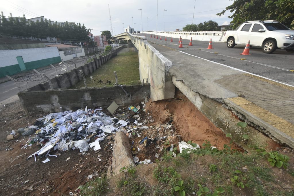 Trecho do Viaduto do Baldo cede após chuvas e precisará de reparo