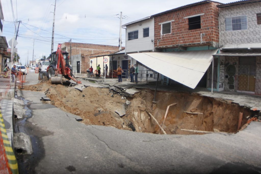 Uma grande cratera se abriu na manhã desta sexta-feira (15) na Rua José Luís da Silva, no bairro Nossa Senhora da Apresentação, na zona Norte de Natal. O buraco, que ocupa praticamente toda a largura da via, colocou em risco imóveis próximos e comprometeu o trânsito local. Equipes da Prefeitura e da Defesa Civil foram […]