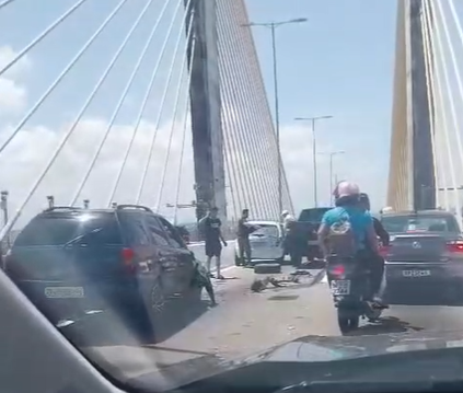 Acidente envolvendo três carros deixa trânsito lento na Ponte Newton Navarro; veja vídeo