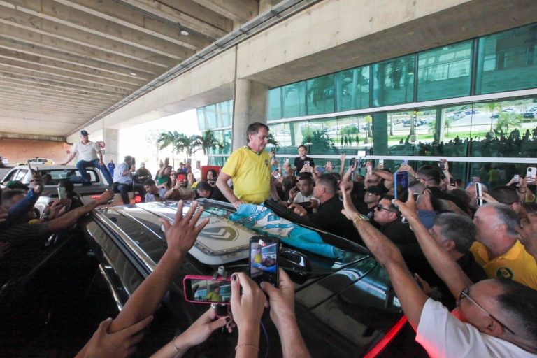 No fim da manhã desta quinta-feira (12) o ex-presidente, Jair Bolsonaro, é recepcionado por uma multidão no aeroporto em São Gonçalo do Amarante/Natal (RN).