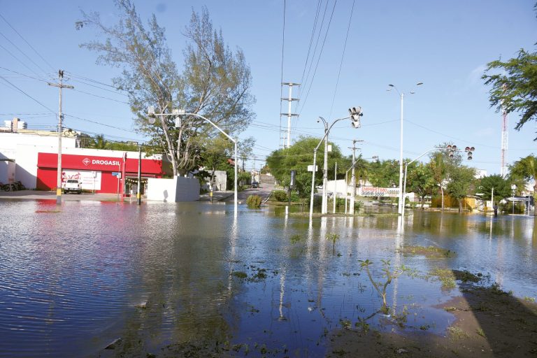 Cerca de 300 metros da Avenida Ayrton Senna, no bairro Neópolis, zona Sul de Natal, permaneceu intransitável durante toda esta segunda-feira (23), após o transbordamento da lagoa de captação no cruzamento com a Avenida das Alagoas, em decorrência das chuvas do último fim de semana. Apesar do dia ensolarado, o nível da água não baixou o suficiente e a Prefeitura não apresentou previsão para normalização da via.