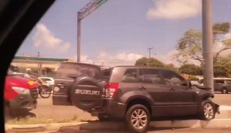 De acordo com a PRF, a condutora de um Vitara sofreu um mal súbito, perdeu o controle do veículo e colidiu inicialmente na traseira de um Tracker. Em seguida, o carro ainda se arrastou pela defensa de concreto até atingir um poste.